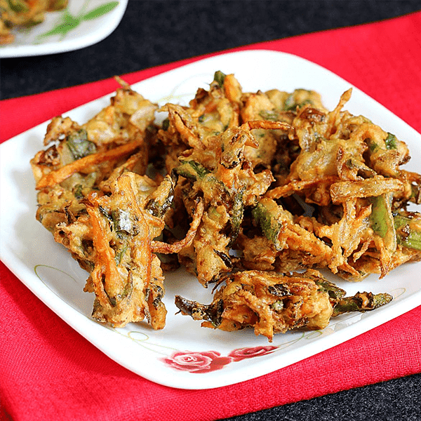 These are deep-fried fritters made with chickpea flour and vegetables, they are crispy and spicy and are usually served with chutney.